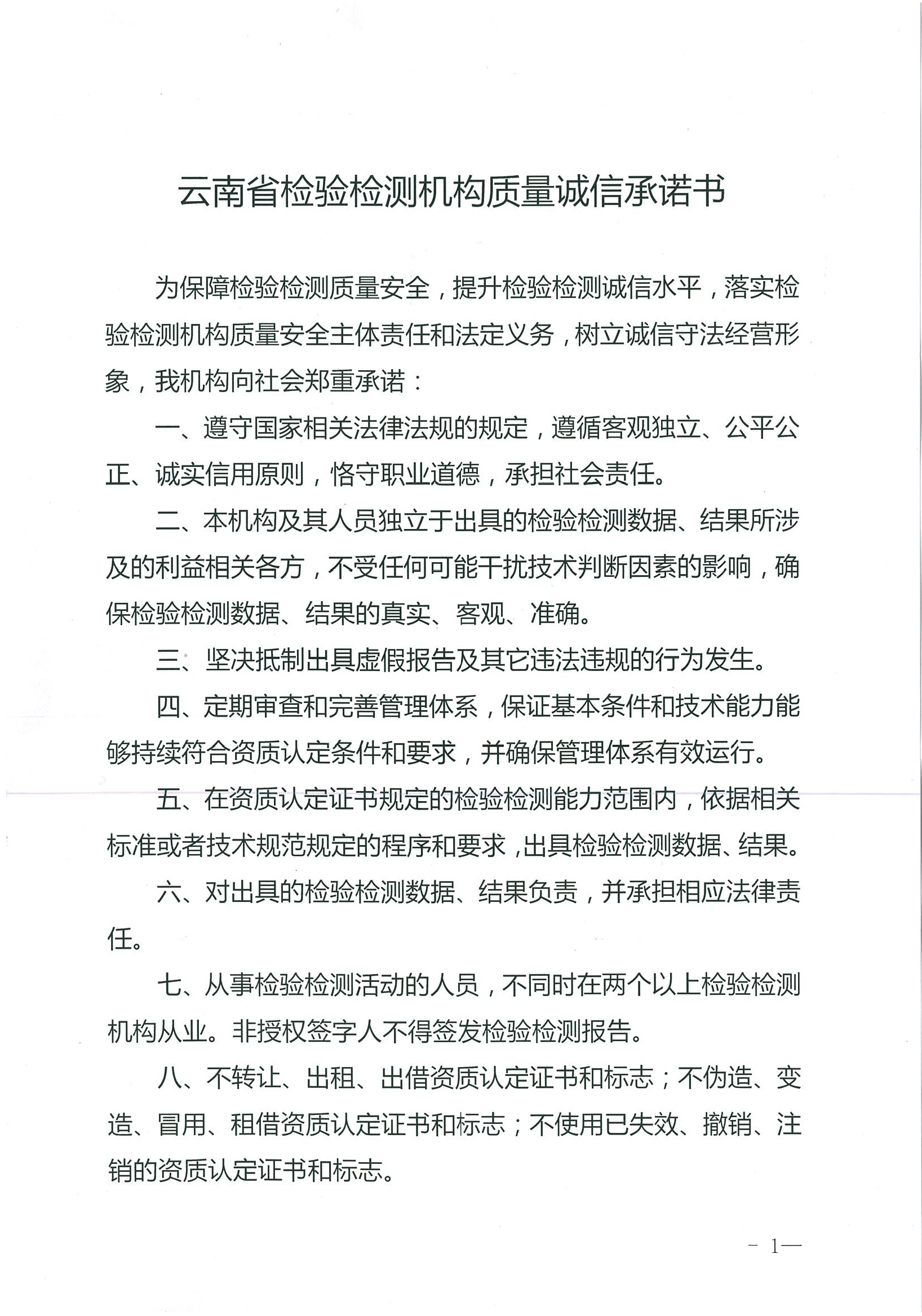 云南省檢驗(yàn)檢測(cè)機(jī)構(gòu)質(zhì)量誠信承諾書